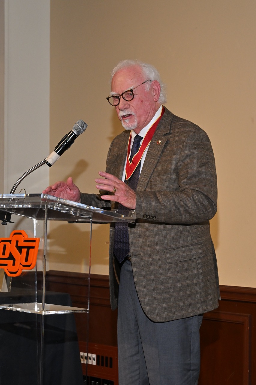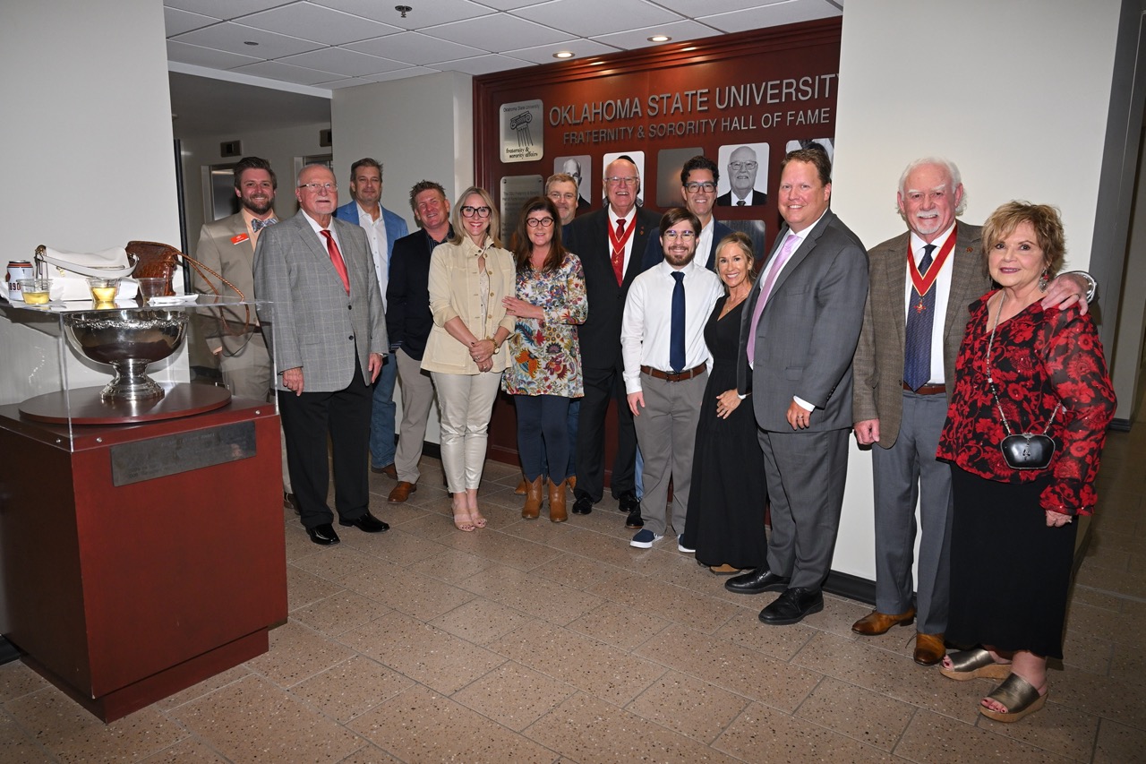 He was presented the Hall of Fame award by fellow Oklahoma State University Greek Hall of Fame inductee Sam O. Leake (Beta Xi–Oklahoma State ’61), who was inducted in 2021. In addition to Sullivan’s family and friends, those present for the occasion included Locke Province Commander F. Jerome Vascellaro, Jr. (Beta Xi–Oklahoma State ’96) and Casey F. Domnick (Beta Xi–Oklahoma State ’07), Assistant Director of Fraternity & Sorority Affairs.