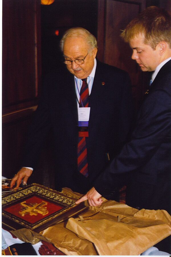 While Dr. Traylor served as Knight Commander, he spearheaded several important accomplishments. He led the move of the National Administrative Office to Lexington, Virginia—initiating and accomplishing a long-held goal of the Order. He revived the office of Chief Alumnus to promote and support of alumni chapters. He revived several suspended chapters and established and chartered five new ones. He led the Executive Council to establish the Award for Distinguished Public Service in 1986, now serving to recognize members who have demonstrated public service by serving in local, state or federal government. In 1997, he was awarded the Order’s Accolade for Interfraternal Service, and he was a member of thirteen Courts of Honor. Continuing his service, in 1999 he was commissioned to design the jewel for the Knight Commander’s Accolade.